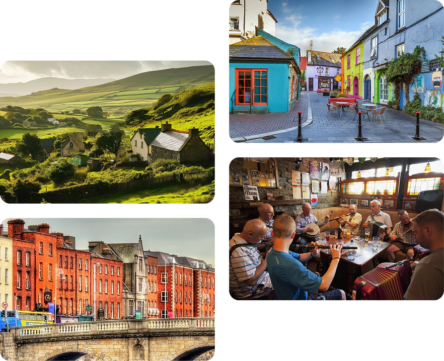 INTERNATIONAL SCHOLAR TOURS LLC is pleased to offer an extraordinary 7-day, 6-night academic-travel experience in Ireland, one of Europe’s most culturally rich countries, home to James Joyce, W.B. Yeats, Oscar Wilde, Samuel Beckett and George Bernard Shaw, as well as Liam Neeson, Pierce Brosnan, Enya, Sinead O’Connor and U-2, great live traditional music, lush green scenery, lively folklore, Leprechauns, Banshees, ancient castles and world-famous wit and friendliness.